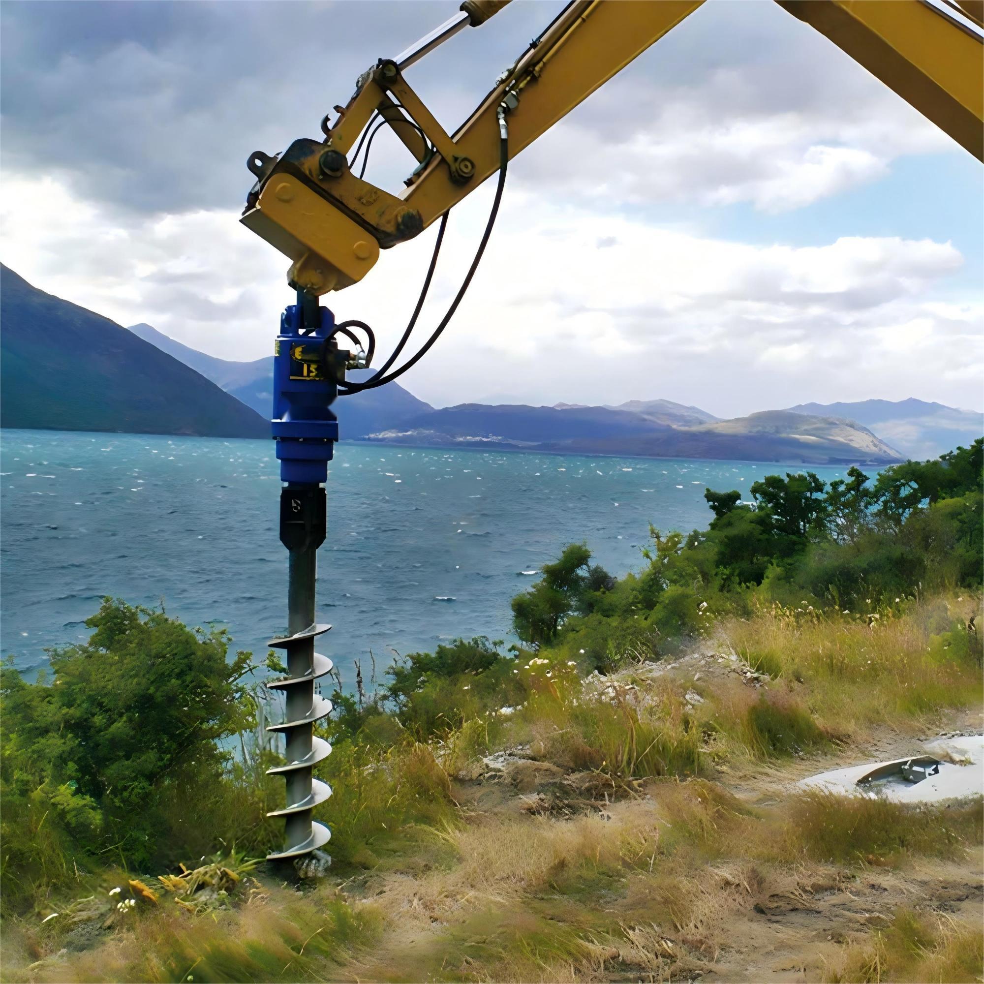 30 -sekundowy złącze szybkiej zmiany umożliwia bezproblemowe przełączanie między wiertłem spiralnym a wiadrem koparki, umożliwiając jednej 15 -tonowej koparce robaka pełnego na pełne zadania wiercenia i zasypu w ciągu jednego dnia.
