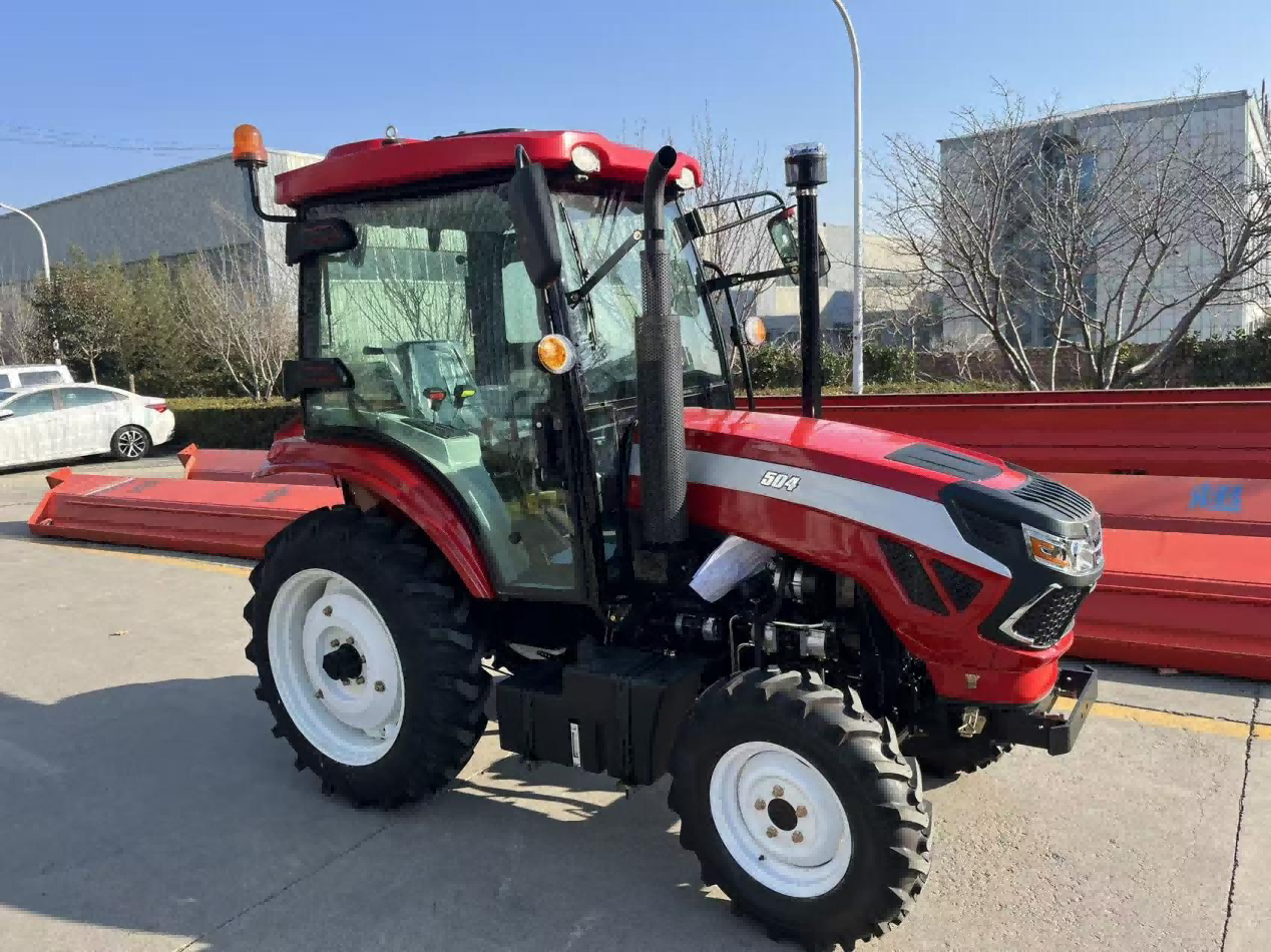 Podstawowym wyposażeniem tego zestawu jest ciągnik z napędem na cztery koła o mocy 50 KM, będący flagowym modelem naszej firmy, zaprojektowanym specjalnie dla światowego rynku małych gospodarstw rolnych. Charakteryzuje się dużą wydajnością, elastycznością działania i wszechstronnością, doskonale spełniając potrzeby operacyjne poszczególnych gospodarstw w Panamie. Model ten wyposażony jest w wysokowydajny silnik o mocy znamionowej 36,8kW. Charakteryzuje się stabilną mocą wyjściową i niskim zużyciem paliwa. W porównaniu do innych modeli w tym samym zakresie mocy, jego zużycie paliwa jest zwiększone o ponad 15%, co znacznie zmniejsza długoterminowe koszty eksploatacji dla rolników indywidualnych. Posiada napęd na cztery koła 4×4 w połączeniu z oponami 7,50-16 z przodu i 11,2-28 z tyłu. Rozstaw kół można elastycznie regulować w zakresie 1000-1500 mm, co pozwala na łatwe poruszanie się po działkach o wąskim rozstawie rzędów na plantacjach kawy, przy jednoczesnym zachowaniu stabilnej przyczepności na otwartych przestrzeniach sadów, całkowicie rozwiązując problemy związane z mobilnością tradycyjnego dużego sprzętu na małych działkach.
